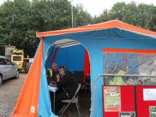 The weather was very windy and more than a little chilly and wet. This had quite a negative effect of our HF contacts on the Saturday with only 47 contacts made over the course of the day 95% of these were made on 80m. We also operated on 2m and FT8 (20m) and had 15 and 25 contact respectively on these bands.